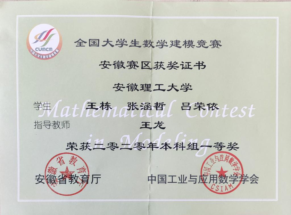 寿化杰同学担任班级生活委员一职,已顺利录取中国矿业大学信息与通信工程专业。大学期间荣获国家励志奖学金、校奖学金、校“三好学生“、“优秀共青团员”等称号。该生申请实用新型专利1项,曾获安徽省“精科杯”物理实验创新竞赛团体一等奖、全国大学生数学建模竞赛(安徽赛区)二等奖。该生十分注重综合能力的提升,大一期间进入校学生会学习部锻炼一年。在校期间积极参加各类创新创业活动,曾主持过大学生创新训练计划省级项目,已顺利结题。