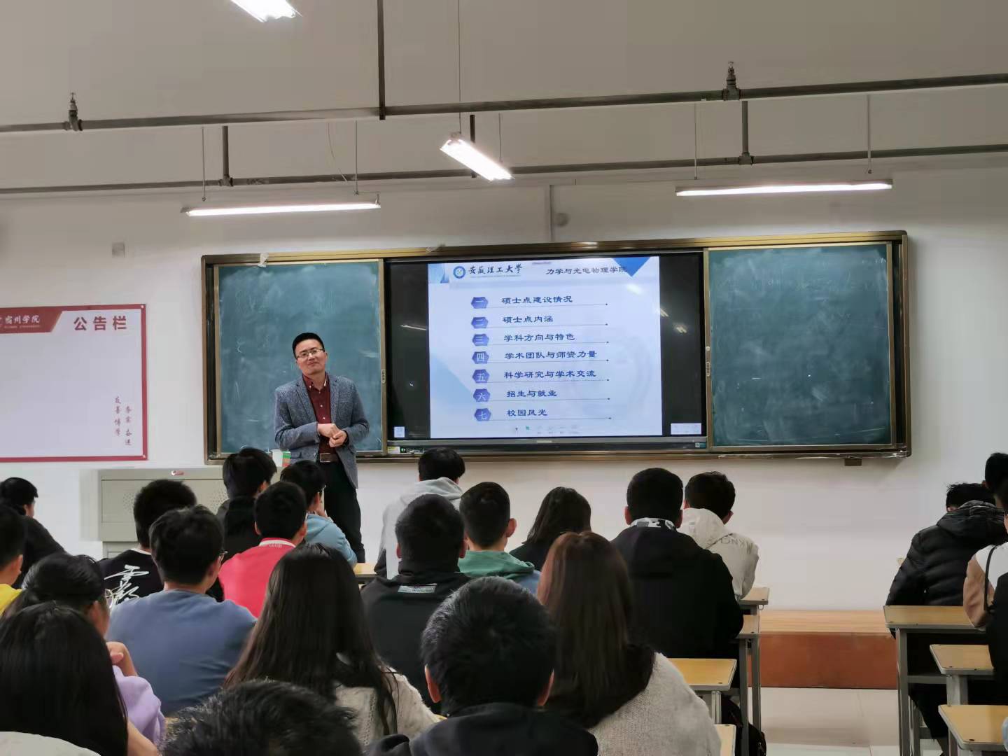 为做好本次宣传工作,学院高度重视,参与人员共同学习了安徽理工大学研究生院关于招生宣传等有关文件,制作了学院宣传PPT、手册等。在招生宣讲过程中,分管研究生工作的高娟副院长向相关学院师生详细介绍了世界杯(中国)的基本情况以及研究生招生的基本政策。光电物理系陈昌兆老师重点对光电系统与控制硕士点的相关情况作了专门的ppt讲解,讲解内容涉及硕士点建设历程、硕士点内涵和专业方向设置、学术团队和师资、科学研究与学术交流、招生和就业、奖助体系等多个方面,宣讲现场人数众多、气氛热烈。