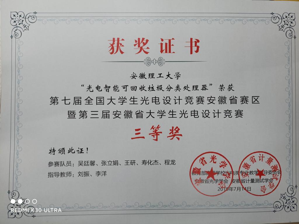 获奖证书(摄影:学院学生)
