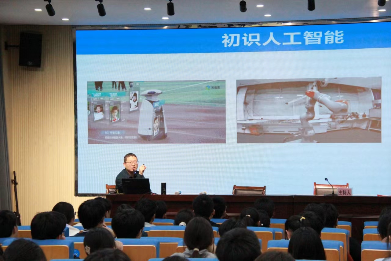 人工智能学院实验中心主任赵鑫以《人工智能的奥秘》为题开展了精彩的科普讲座,通过平安校园、智能化学实验机器人、农村新型除草机器人等,让学生对人工智能应用场景等有了直观的了解,以视频和图片的形式生动形象地讲解了人工智能的概念、代表性人物,详细介绍了人工智能在图像处理、生活、自然语言处理、科研、传统文化、智能家居、自动驾驶、产业赋能以及生成式人工智能等领域的应用,让同学们对人工智能有了全新的认识与了解。