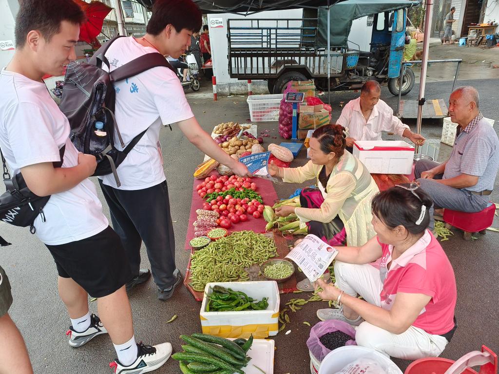 田间“大课堂”,青春大学习。在村里无花果产业区,志愿者们拎起镰刀、锄头等农具开始劳作,烈日炎炎下,经过两个小时的努力,杂草基本上被清理的干干净净。在村期间,实践团队员们纷纷走进稻田和瓜田实地调研,向村民学习水稻、西瓜等农产品的种植方法和技巧,真切感受到近年来乡村振兴取得的喜人成果,为乡村发展蒸蒸日上的态势感到自豪。