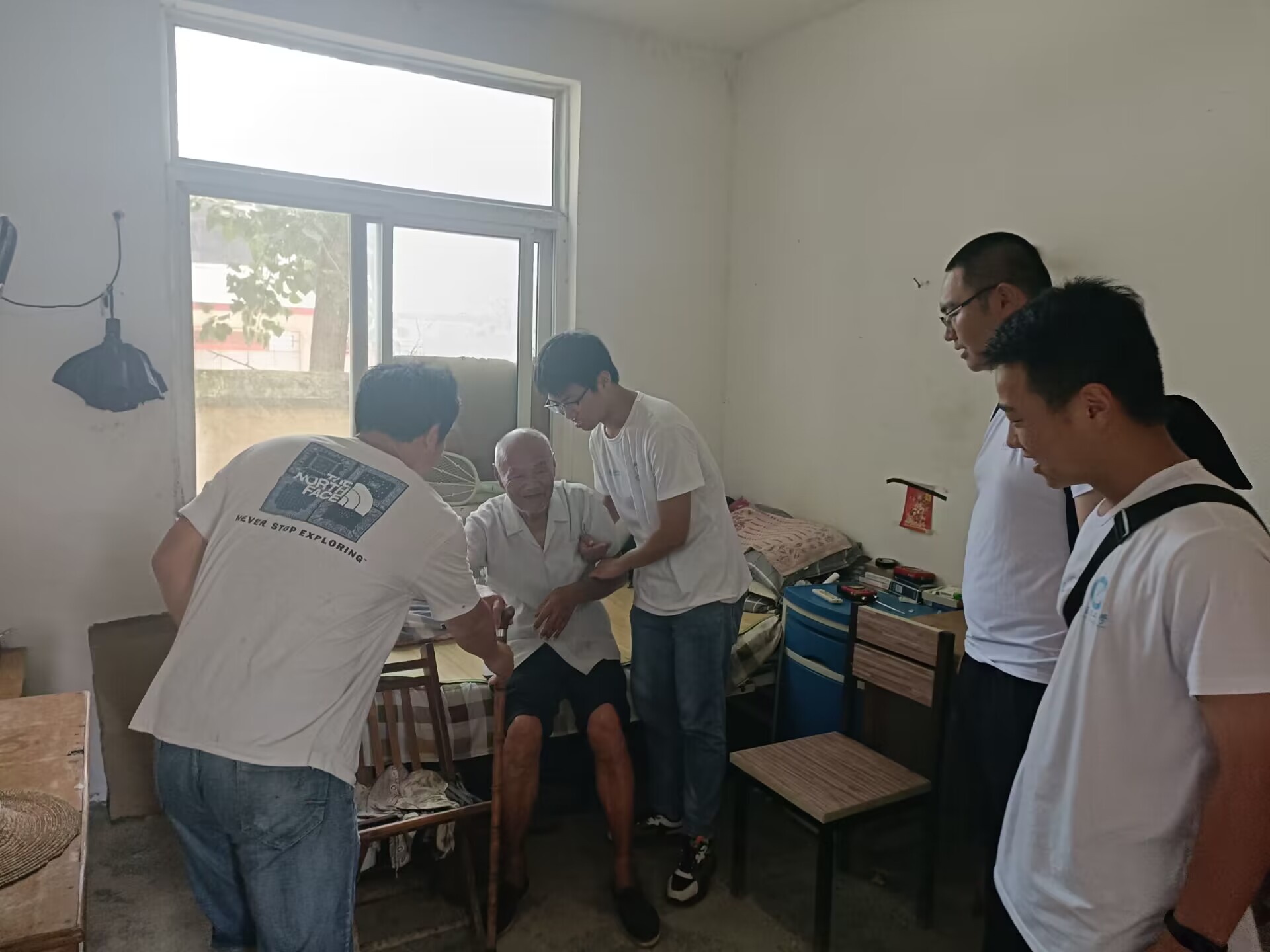 情系敬老院,温暖老人心。尊老、敬老、爱老是中华民族的传统美德,在镇养老服务中心,院长热情接待了团队一行并详细介绍了养老院相关情况。队员们分工明确,养老院的各个角落都能看到同学们忙碌的身影,有的认真地捡拾楼院里的垃圾,有的同学陪老人聊天,嘘寒问暖,幸福的笑容洋溢在每一位老人的脸上。同时,同学们还将精心选购的牛奶、防暑药品等慰问品送到老人们手中。
