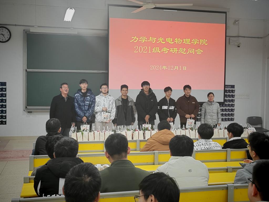 12月1日下午,在2025年硕士研究生入学考试即将来临之际,世界杯(中国)在明理南112教室举办考研慰问大会。学院党委书记孙东升、党委副书记郑孝莲、2025届毕业年级辅导员参加慰问活动,共同为考研学子送上温暖与祝福。
