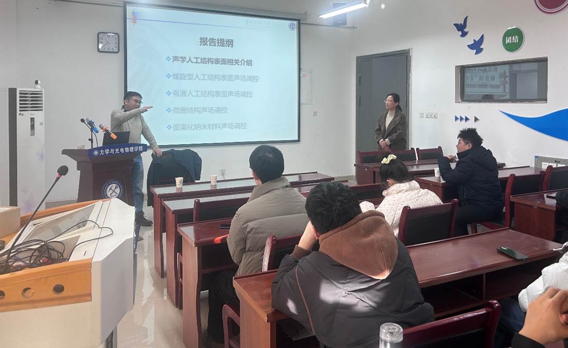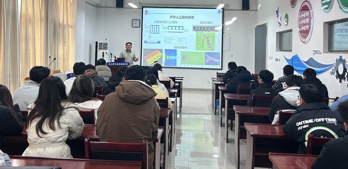 报告结束后,祝雪丰教授对现场提出的疑问进行了深入且详尽的回应。本次学术交流盛会内容丰富、形式多元,极大地加深了我院师生对于人工结构在声源辐射和声波传播调控方面的认识与理解,拓展了学术视野,同时也有效点燃了师生们的研究热情,取得了显著的成效。