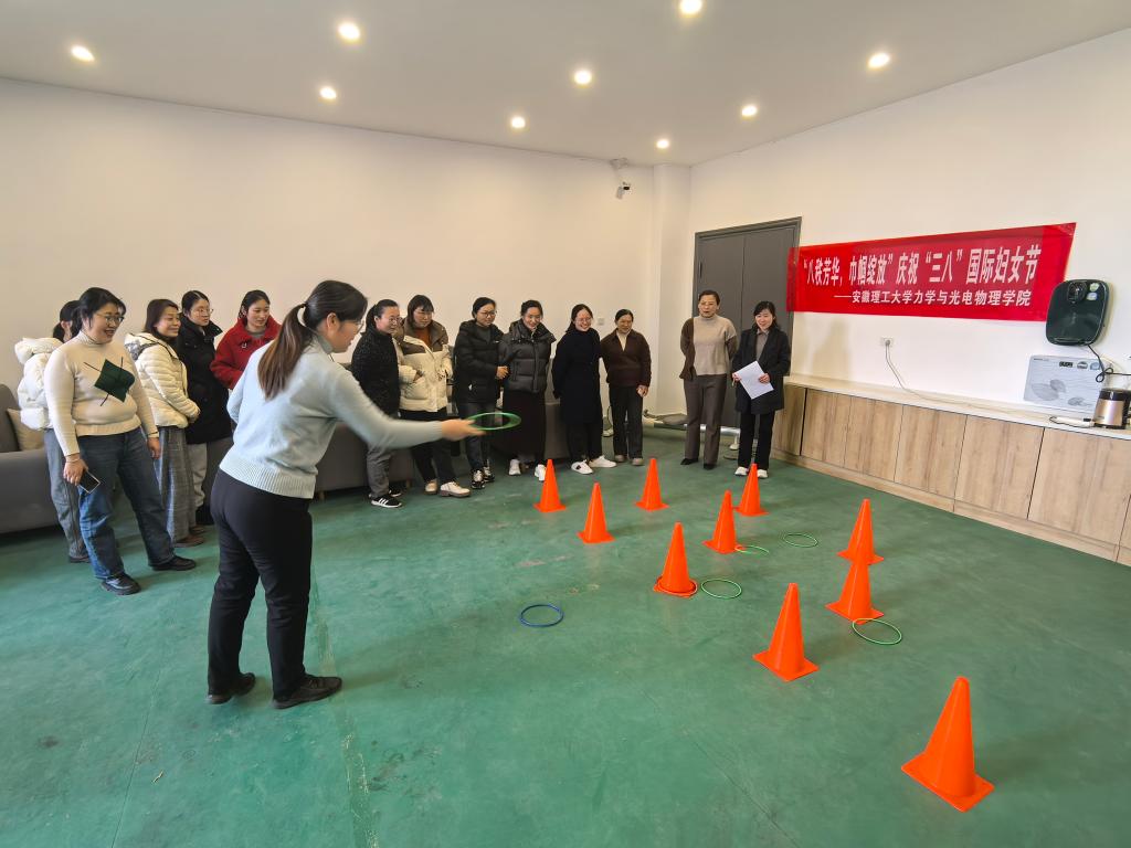 阳春三月,春风送暖。在第115个“三八”国际妇女节来临之际,为喜迎学校建校80周年,丰富学院女教职工的业余文化生活,3月7日下午力学与光电物理学院举办了“八秩芳华 巾帼绽放”趣味套圈活动。