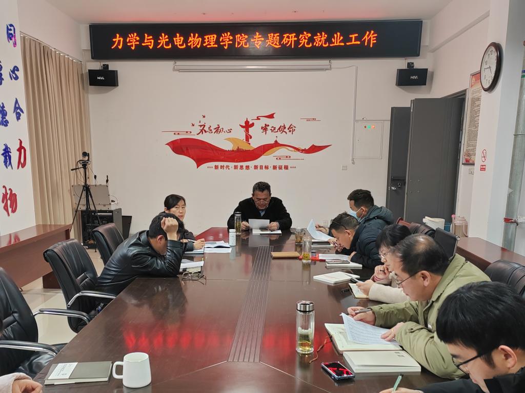 为进一步做好2025届毕业生就业工作,促进学院毕业生高质量就业。3月14日下午,力学与光电物理学院在明道楼A320会议室召开2025届毕业生就业工作推进会,学院领导班子成员、系主任、毕业班辅导员参加会议。会议由学院党委书记孙东升主持。