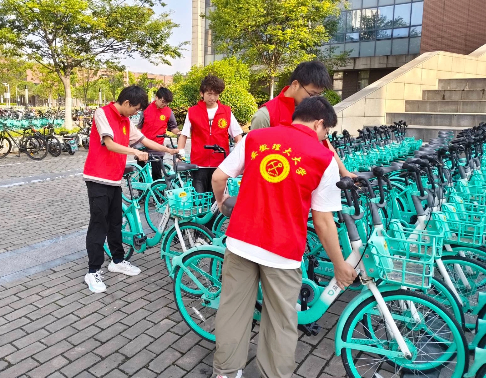 5月9日-10日,“聚力凝光”志愿服务队对学生公寓楼、教学楼等区域内的散乱车辆进行了集中整理,单车摆放整齐率显著提升,切实增强了学生劳动意识与责任感。
