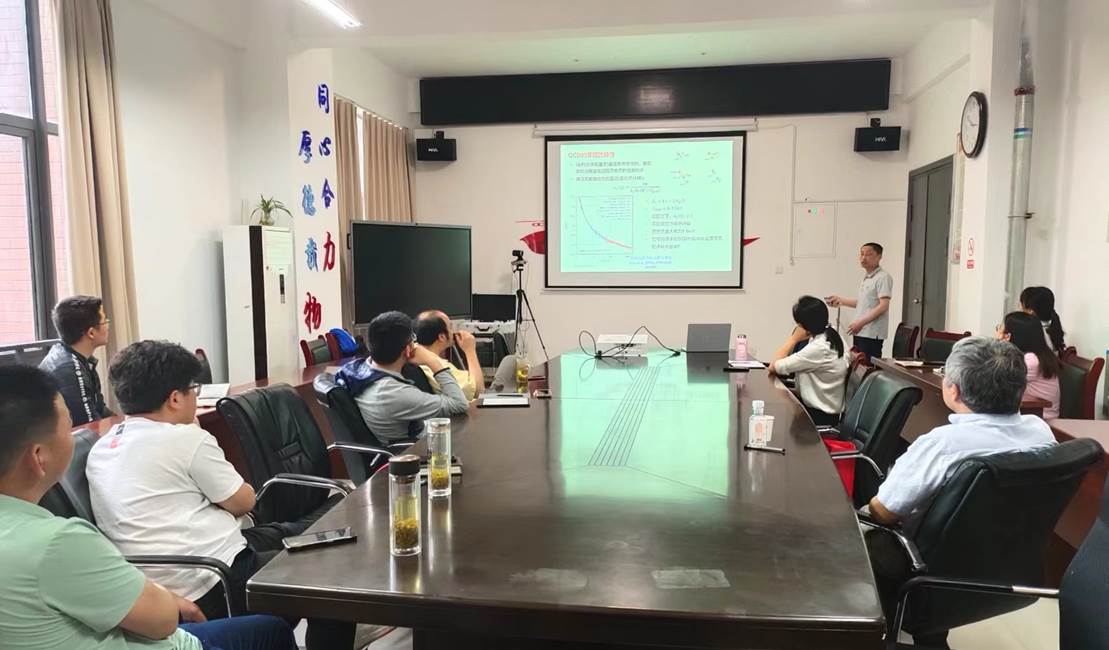报告会上,刘朝峰研究员首先讲解了格点量子色动力学(LQCD)的基本理论,作为一种基于离散化时空格点的数值计算方法,格点量子色动力学可用于模拟量子色动力学(Quantum Chromodynamics, QCD)这一描述强相互作用的基本理论。通过在四维时空中引入离散的格点,将QCD的连续场论转化为有限维的数值问题,进而利用计算机进行高精度的数值计算。LQCD不仅可以用于计算强子质量、衰变常数等物理量,还可以研究强子内部的结构和相互作用机制。随后,重点介绍了利用格点量子色动力学在粲夸克物理研究方面取得的进展。通过与实验结果的对比,验证了LQCD在粲夸克质量、衰变常数以及粲重子谱计算方面的准确性,并检验了标准模型的有效性。最后,刘朝峰研究员同与会师生进行了深入探讨交流,并对现场提出的问题做出了详细的解答。