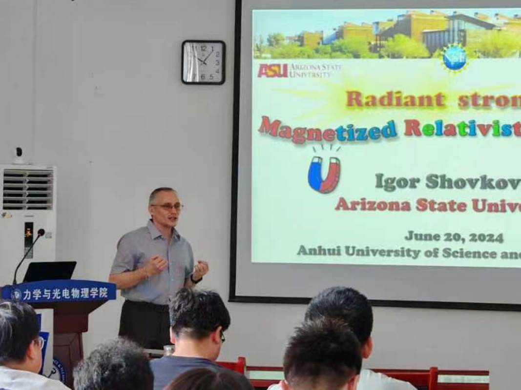 应基础物理研究中心邀请,6月20日上午,美国亚利桑那州立大学Igor Shovkovy教授来中心做学术交流,并作题为《Radiant strongly magnetized relativistic plasmas》的学术报告。本次学术报告同时也是基础物理研究中心正式成立后的第二期特邀报告。报告会在世界杯(中国)报告厅举行,世界杯(中国)主要负责同志对Shovkovy教授的到来表示热烈欢迎,基础物理研究中心成员及学院部分教师和研究生参加了报告会。